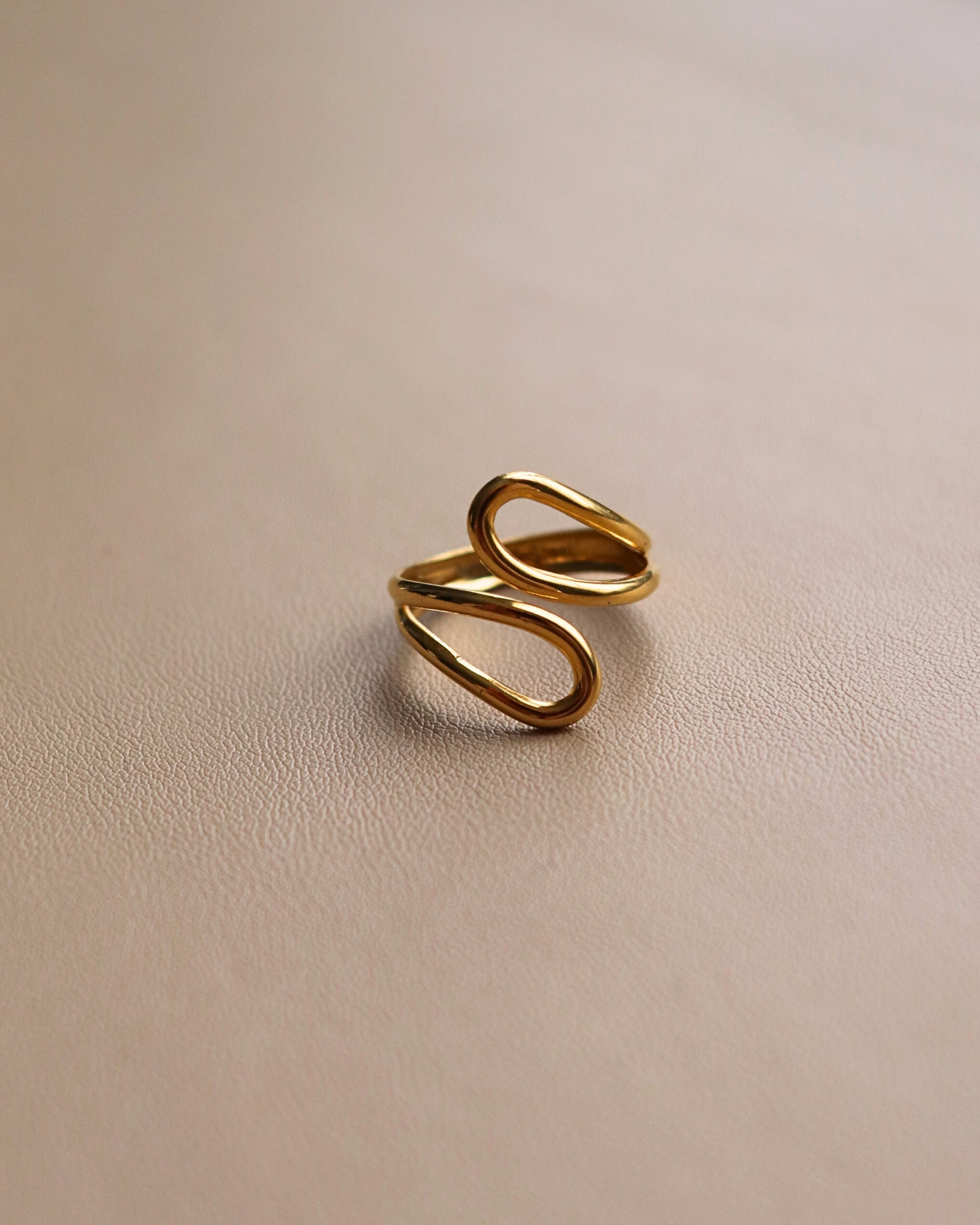 La bague Neyra joue avec les courbes pour créer une silhouette fluide et audacieuse. Son design ouvert entoure le doigt avec finesse, comme un délicat ruban doré.