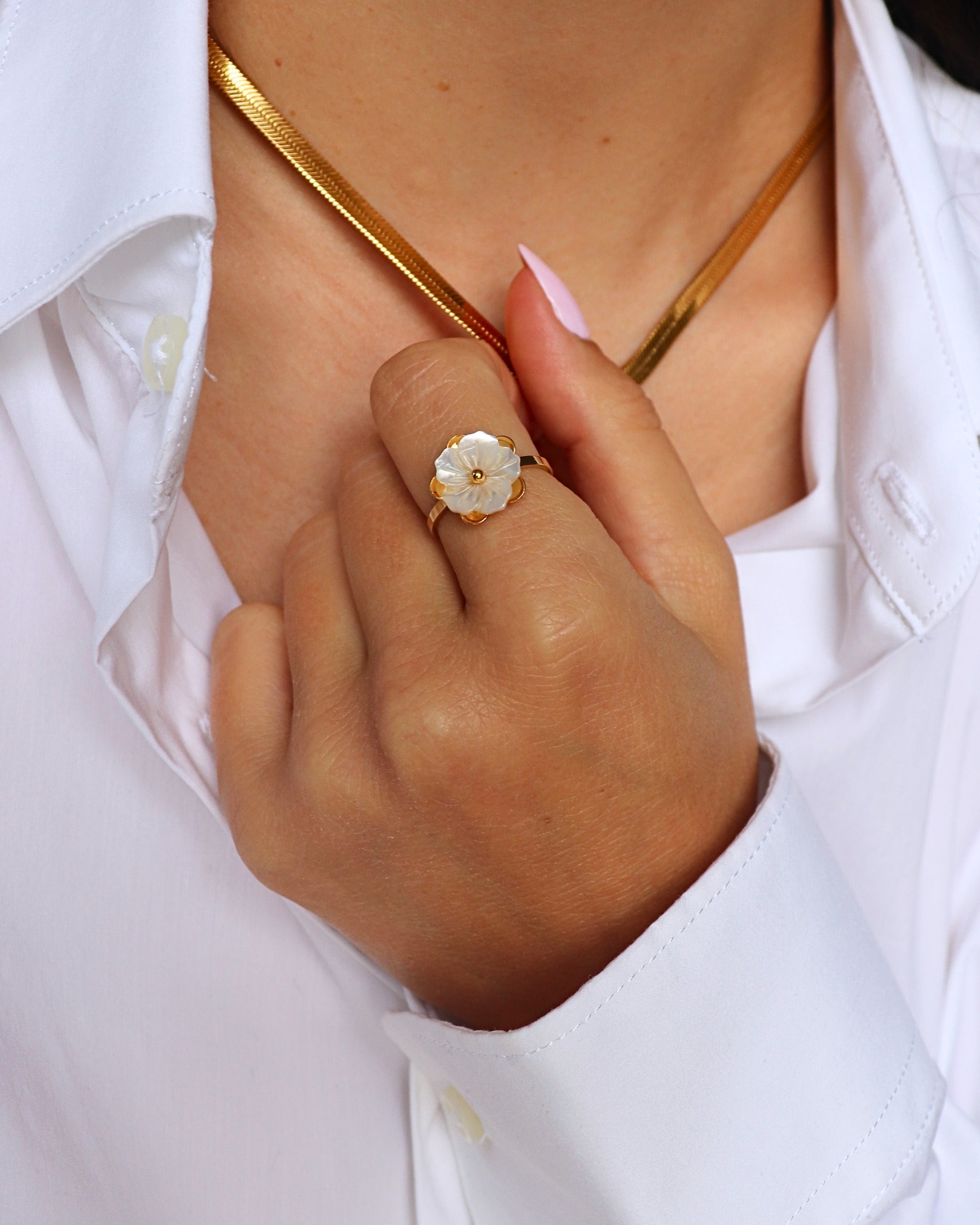 La bague sakura rend hommage à la beauté des fleurs de cerisier. Délicatement posée sur le doigt, sa fleur blanche sculptée apporte une touche de douceur et de fraîcheur. une pièce lumineuse qui célèbre la tendresse et la simplicité.