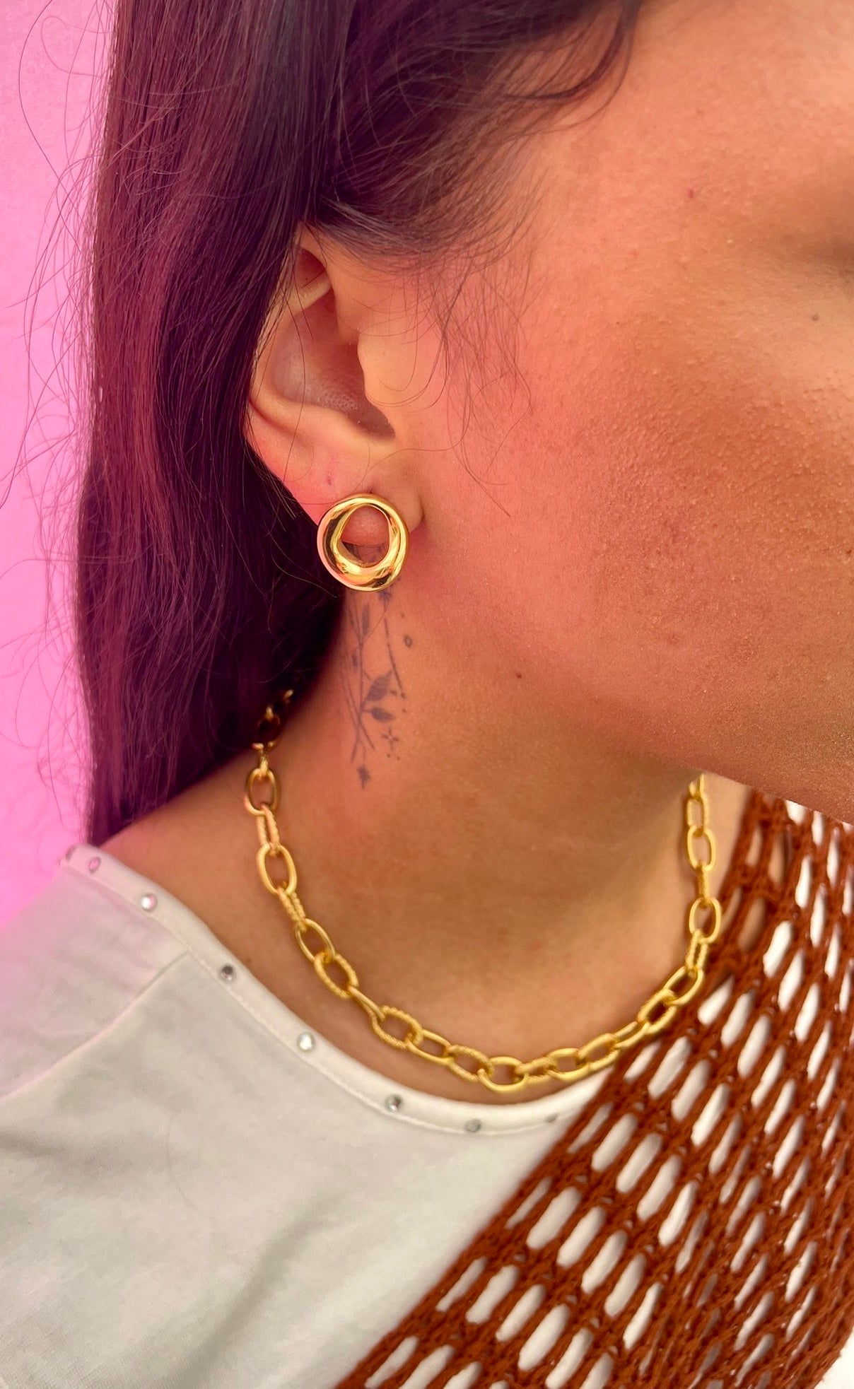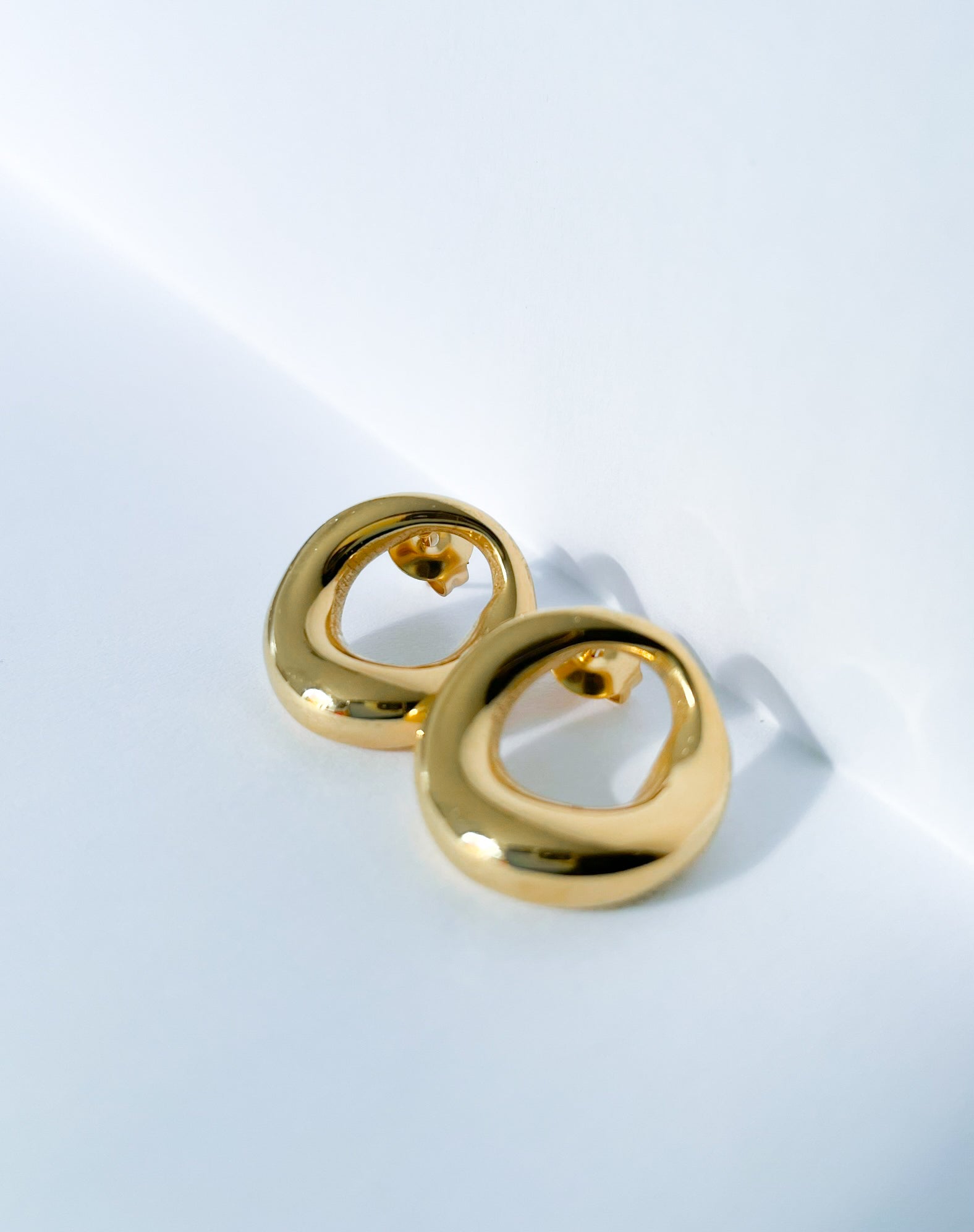 Découvrez nos boucles d’oreilles “Lou”, un bijou sculptural au design organique et assumé. Leur forme irrégulière et leur finition dorée miroir en font une pièce forte, à la fois artistique, moderne et assurément classe.