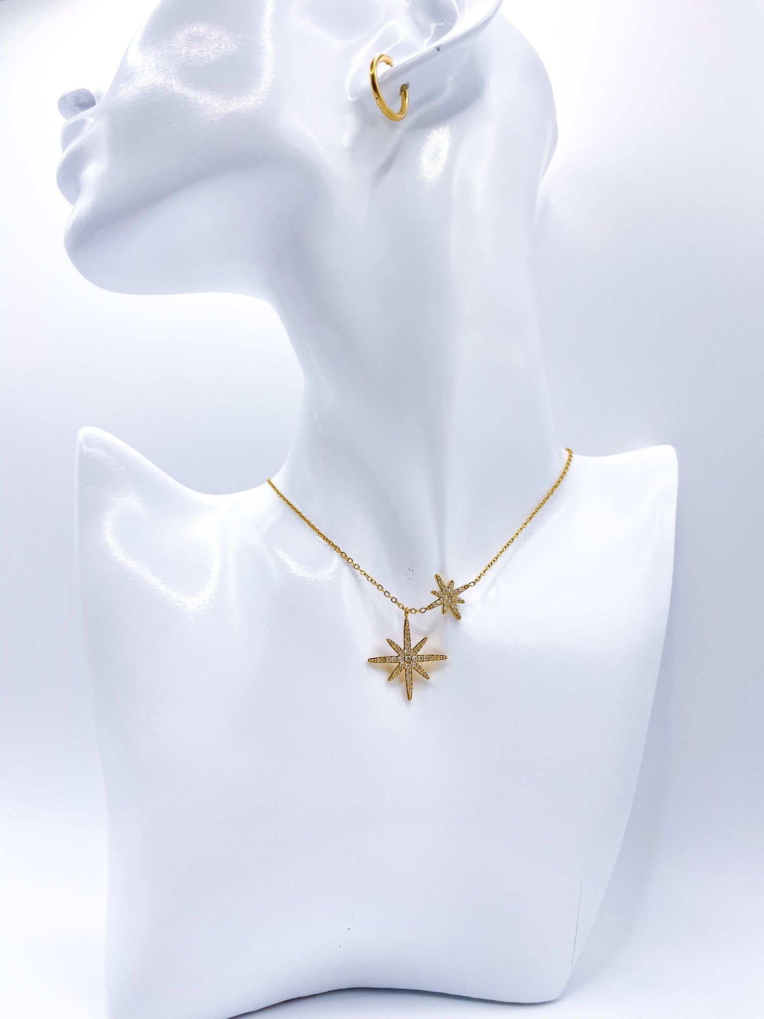 Laissez-vous séduire par le collier "Aven", délicatement orné de petites étoiles dorés qui scintillent et apportent une touche de douceur à votre look. Sa finesse et son éclat subtil illuminent votre décolleté avec élégance, apportant une touche de mystère à vos tenues.
