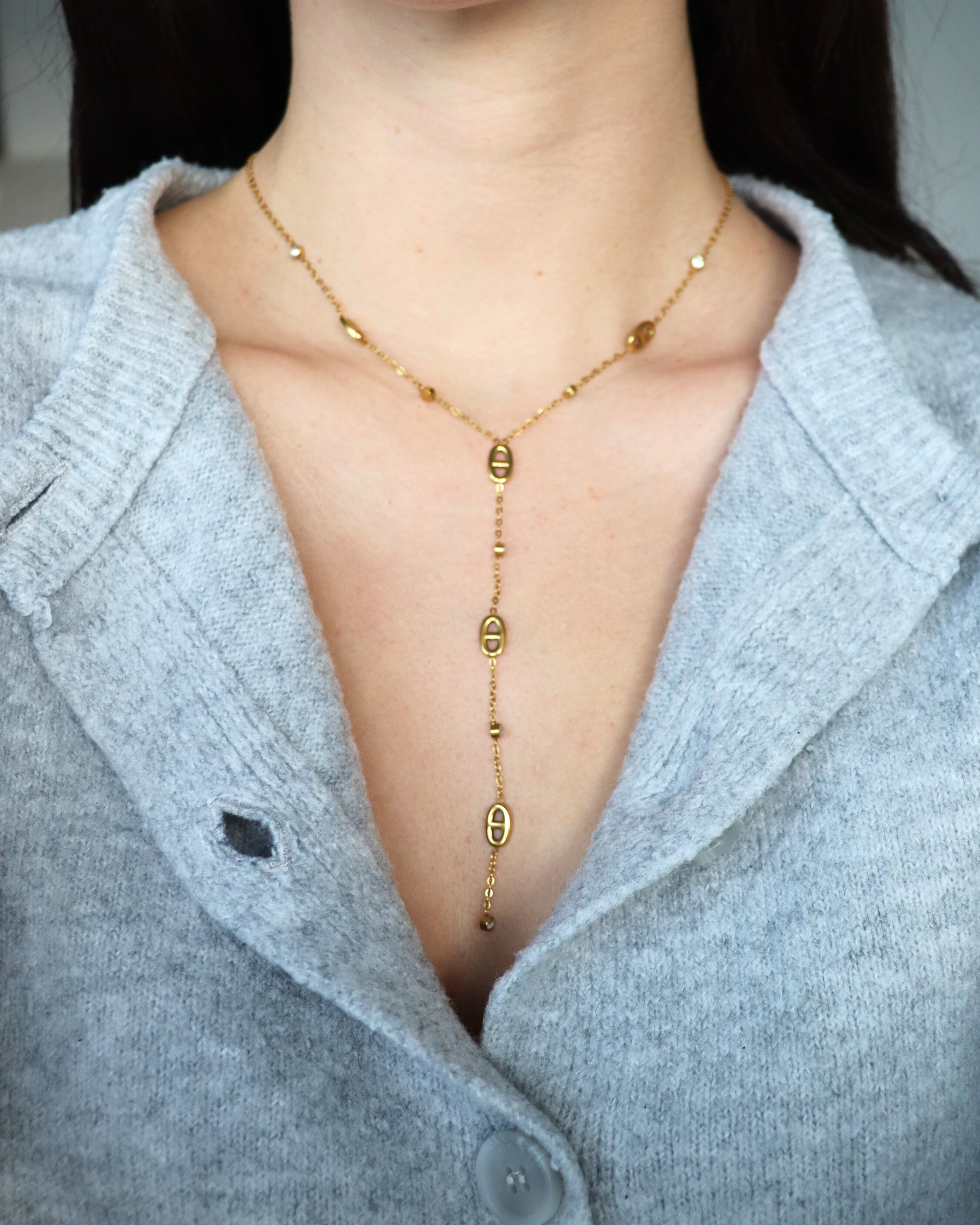 Laissez-vous séduire par le collier "Isalya", délicatement orné de détails dorés. Sa finesse et son éclat subtil illuminent votre décolleté avec élégance, apportant une touche de mystère et de douceur à vos tenues.