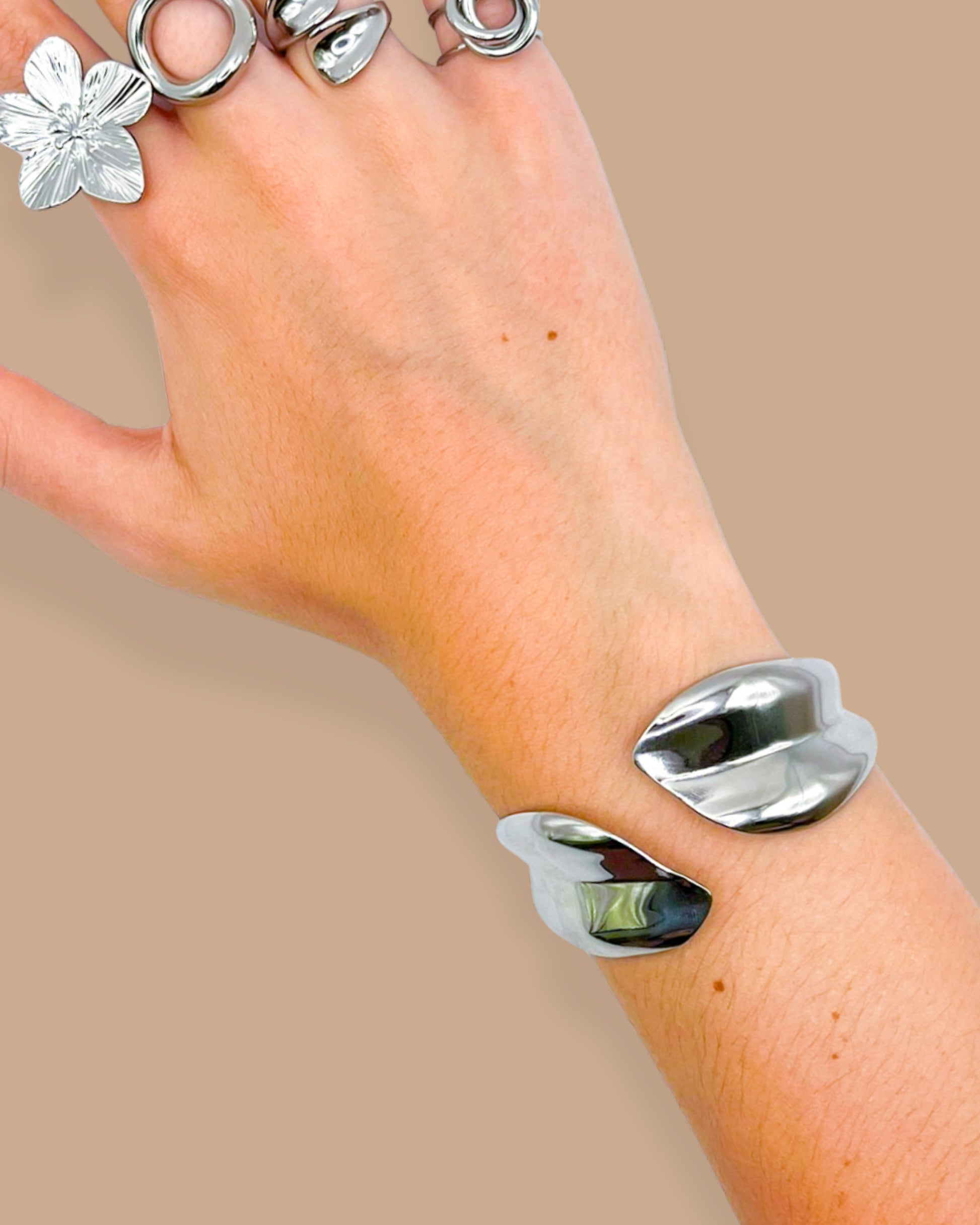 Le jonc "Soha" affirme sa présence avec ses lignes épurées et sa brillance dorée. à la fois minimaliste et audacieux, il se porte seul ou en superposition pour un look structuré et élégant.