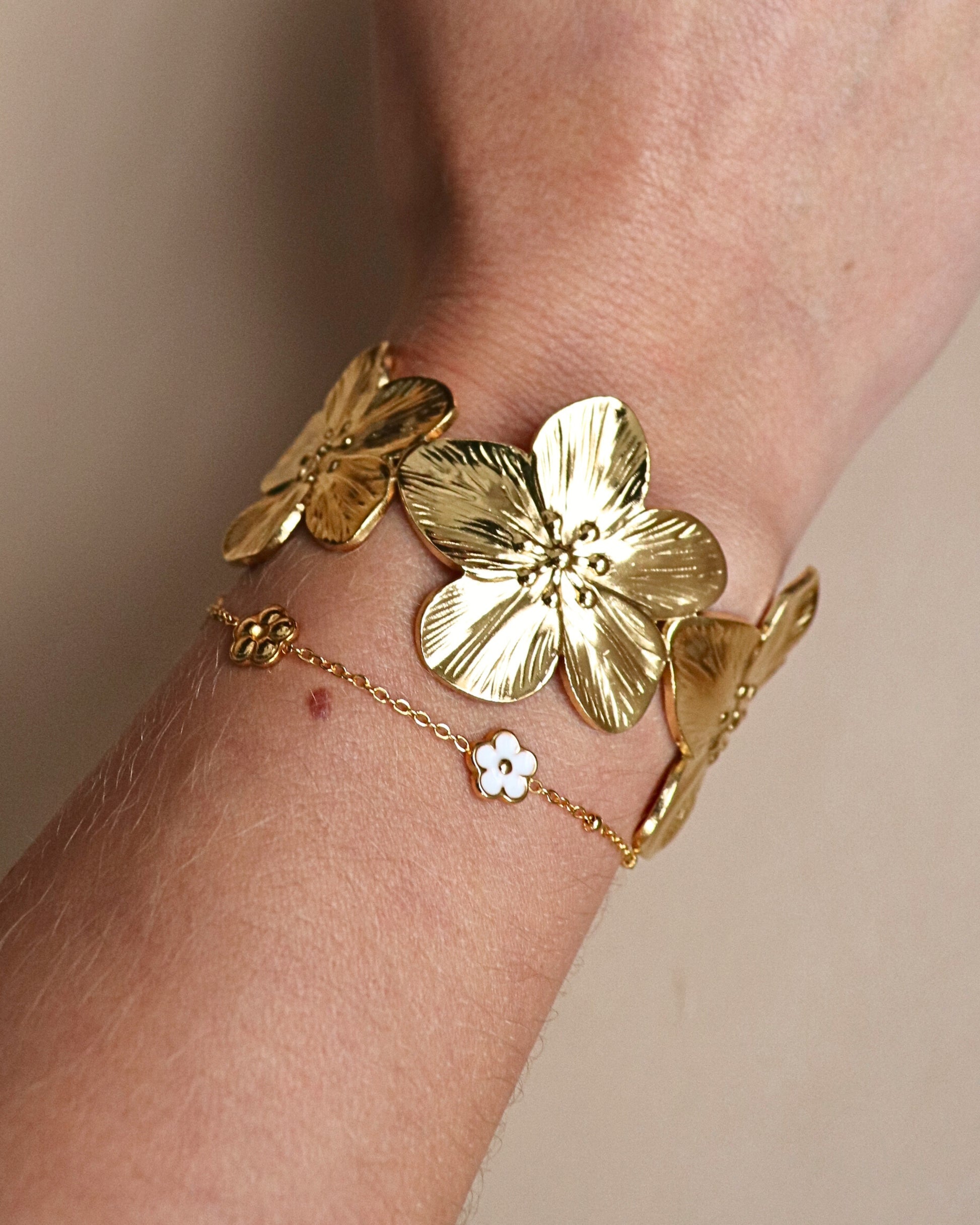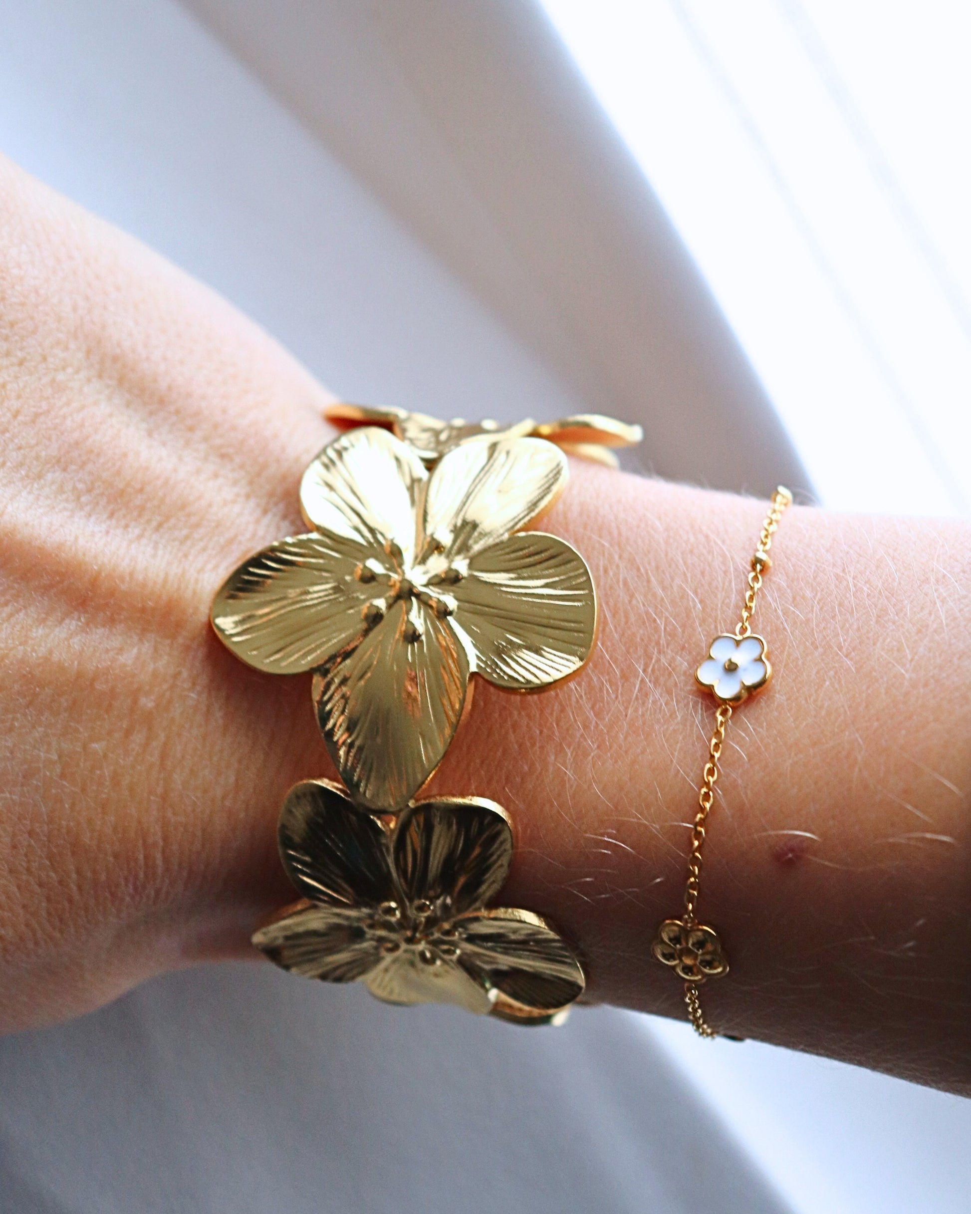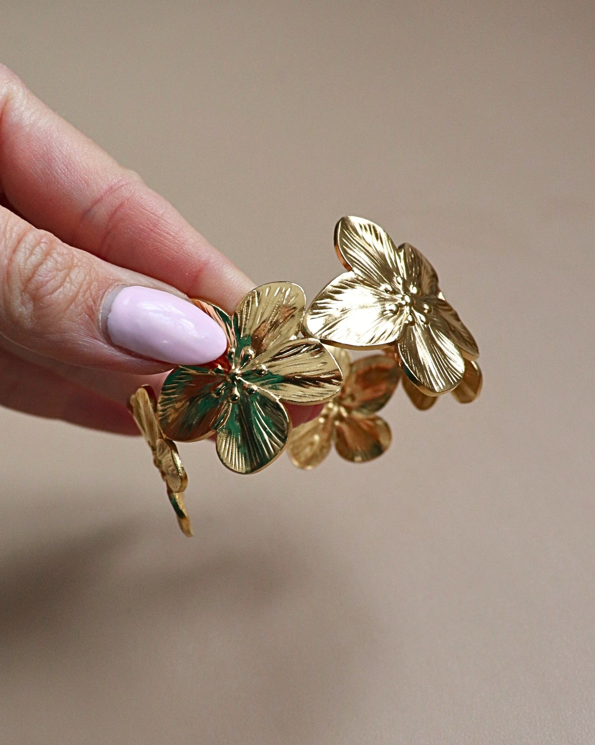 Le jonc "Yasmina" affirme sa présence avec ses lignes épurées et sa brillance dorée. A la fois minimaliste et audacieux, il se porte seul ou en superposition pour un look structuré et élégant.