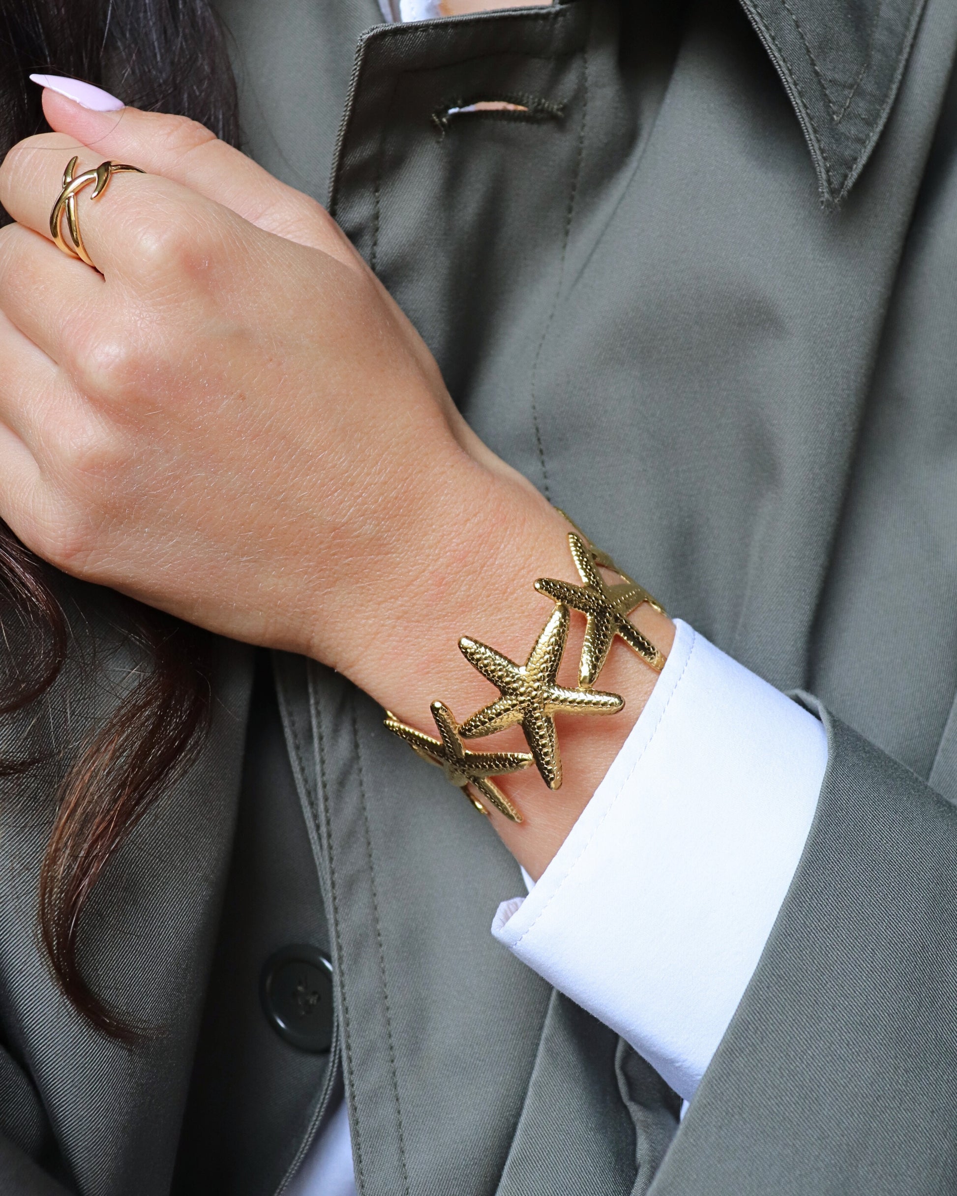 Le jonc "Vaïana" affirme sa présence avec ses lignes épurées et sa brillance dorée. à la fois minimaliste et audacieux, il se porte seul ou en superposition pour un look structuré et élégant.