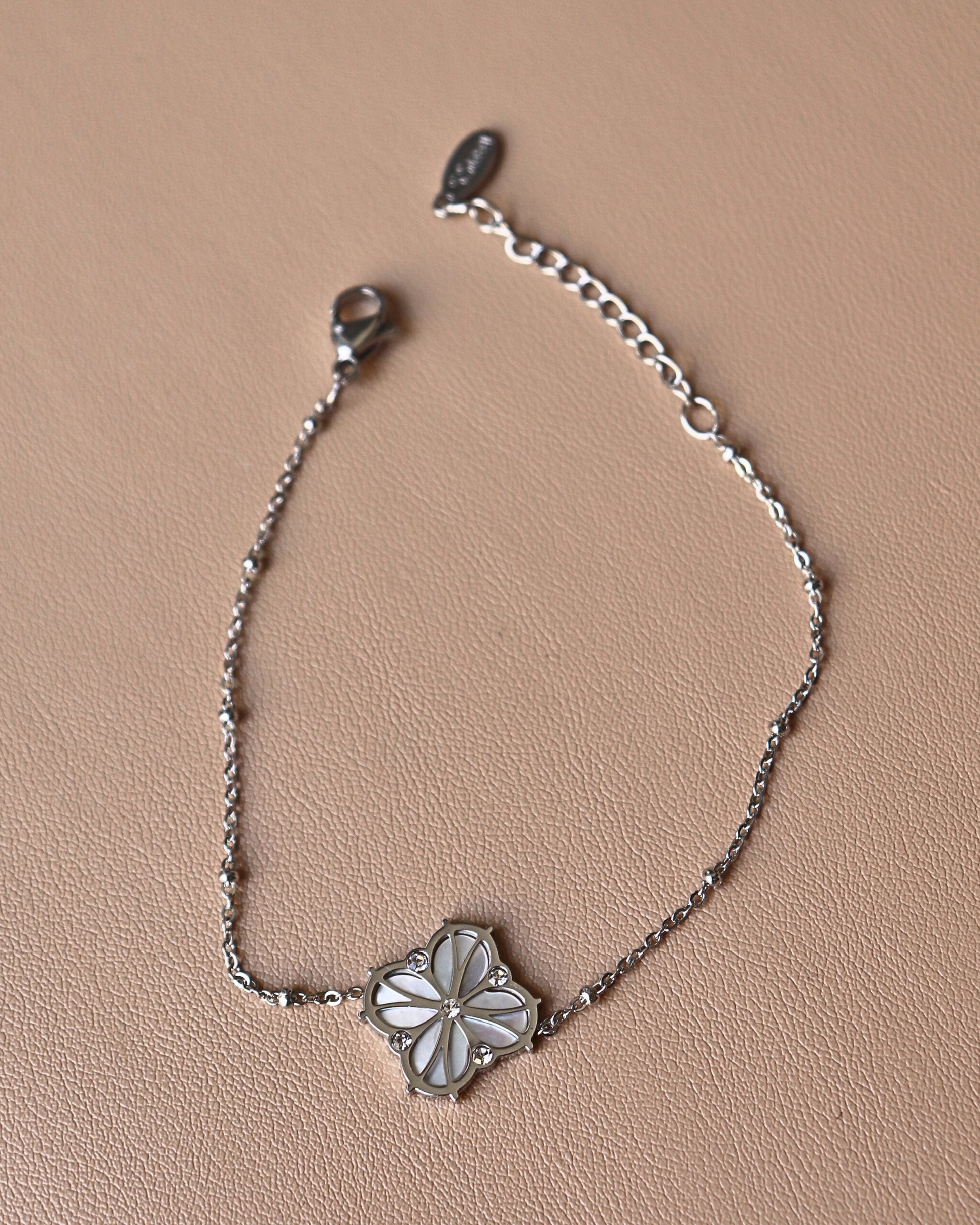 Découvrez notre bracelet "Neige", composé d'une fine chaîne délicate et d'un pendentif flocon transparent orné de strass étincelants. Il apporte une touche subtile d'élégance et de raffinement à vos tenues.